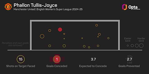 Parris' goal was the first they had conceded this season, as Phallon Tullis-Joyce has seamlessly filled Earps’ place between the sticks. She has faced 15 shots on target and has prevented 2.7 goals, according to Opta's expected goals on target model (xGoT).