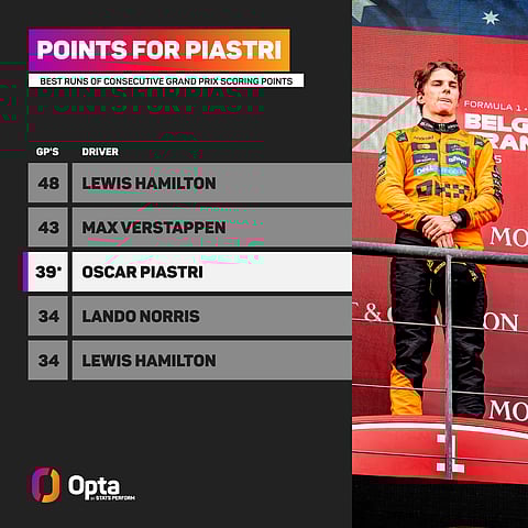 Piastri's career points haul now stands at 655 following his win at Spa. If he scores at least four points in Hungary, he will surpass Rubens Barrichello (658) as the 19th highest-scoring driver in the history of the competition.