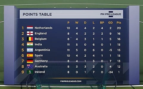India are fourth with 15 points, and Argentina have jumped from seventh place to fifth with this win.