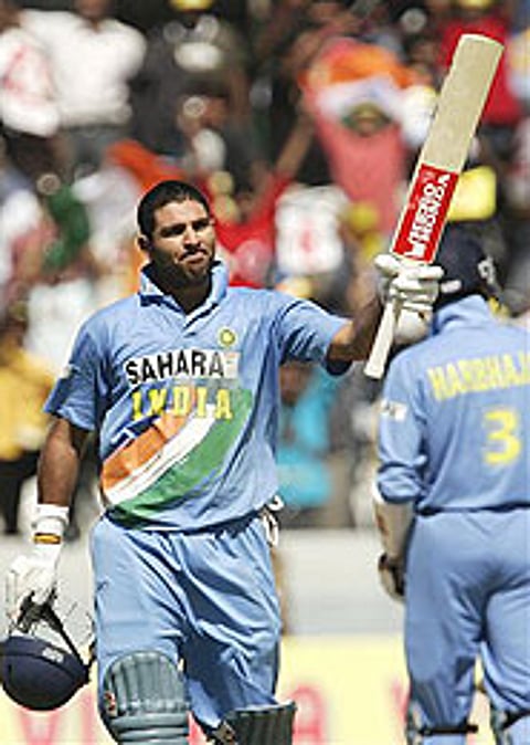 Irfan Pathan, who made 46 and shared a valuable 75-run partnership with Yuvraj, found himself at the receiving end and conceded as many as 37 runs from his first four overs, forcing skipper Rahul Dravid to pull him out of the attack.