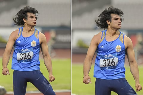 Neeraj Chopra competes in the men's javelin throw event at the 18th Asian Games 2018 in Jakarta, Indonesia on August 27, 2018. Chopra won the gold medal with a new national record. PTI Photo/Vijay Verma