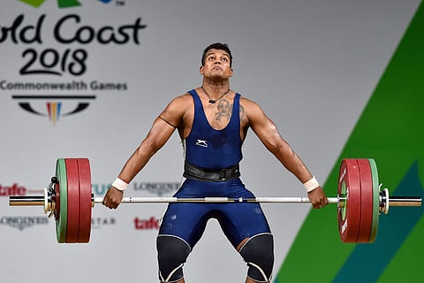 Gold medalist Indian weightlifter Venkat Rahul Ragala competes at men's 85 kg weightlifting category during the Commonwealth Games 2018 in Gold Coast on April 7, 2018. PTI Photo/ Manvender Vashist