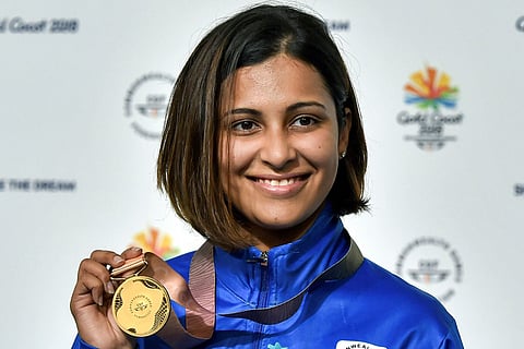 Heena Sidhu poses with her medal during a medal ceremony after winning gold in the women’s 25m pistol final event at the Commonwealth Games 2018 in Brisbane, Australia on April 10, 2018. PTI Photo/ Manvender Vashist