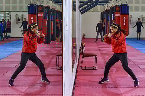 Mary Kom during a training session on the eve of her semi-final bout in the AIBA Women's World Boxing Championships in New Delhi on November 21, 2018. PTI Photo/Manvender Vashist