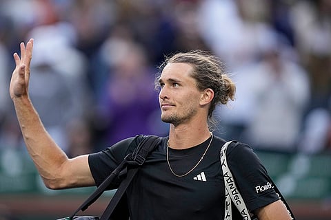 Alexander Zverev, of Germany, waves to the crowd after losing to Carlos Alcaraz, of Spain, during a quarterfinal match at the BNP Paribas Open tennis tournament in Indian Wells, California.