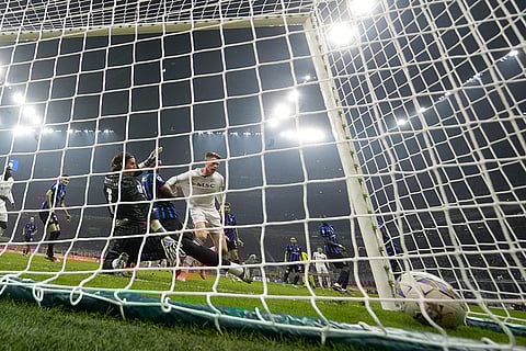 Inter Milan's goalkeeper Yann Sommer (1) fails to save a goal by Napoli's Scott McTominay during a Serie A soccer match between Inter Milan and Napoli at the San Siro stadium in Milan, Italy.