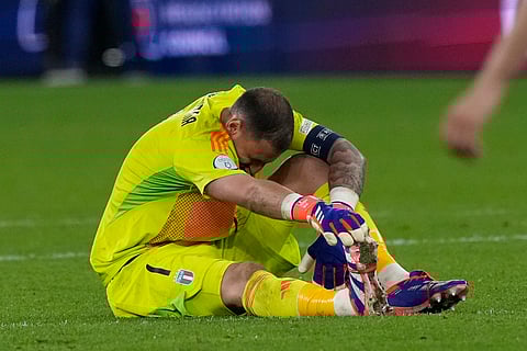 Italy's goalkeeper Gianluigi Donnarumma doing Aasan pose that would impress any Yoga instructor.