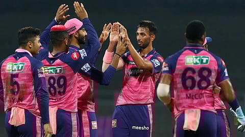 Chasing the imposing total, DC made a brisk start with Prithvi Shaw (37) and David Warner (28), adding 43 runs in 4.3 overs before the latter edged a Prasidh Krishna delivery to skipper Sanju Samson behind the stumps.