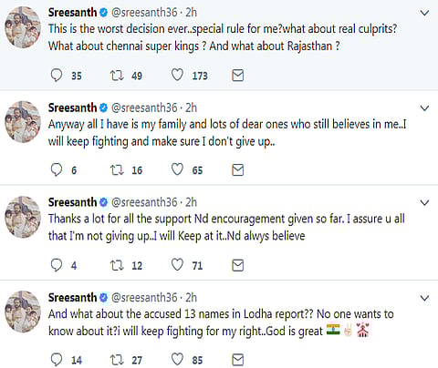 Tuesday’s order will come as a big blow to the 34-year-old who was planning to play Ranji Trophy for Kerala.