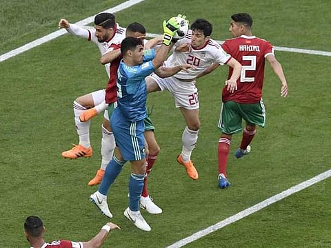 Iran were gifted a late 1-0 victory over Morocco in their opening World Cup match on Friday when Aziz Bouhaddouz headed into his own net five minutes into injury time.