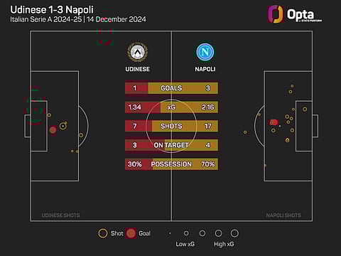 Napoli are now unbeaten in their last 17 matches against Udinese in Serie A, winning 14 and drawing three.