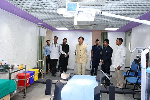 Union Minister Mansukh Mandaviya inspects facilities at the National Centre for Sports Science and Research after inauguration at IG Stadium in New Delhi
