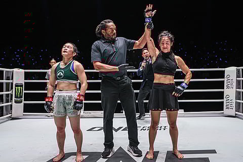 Meng kept her foot on the gas pedal in the second and third rounds, even putting the wrestler on her back, where she unleashed heavy ground and pound.
