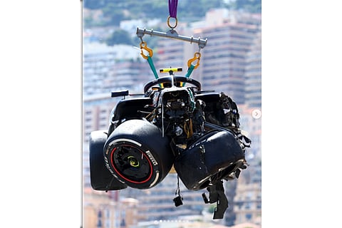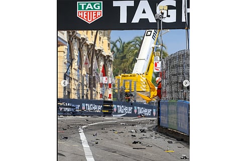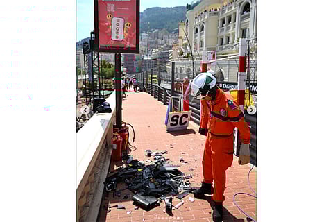 The aftermath of the collision shows debris scattered all over the Monaco circuit.