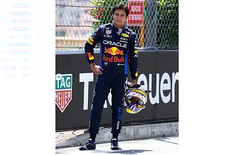A steward checks on Sergio Perez's car after it met with a crash at the Monaco GP on Sunday.