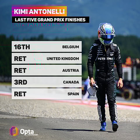 Ahead of last weekend's race at Spa, Antonelli had retired in three of his last four races in 2025, with all four of Mercedes' retirements this year having been by the Italian.