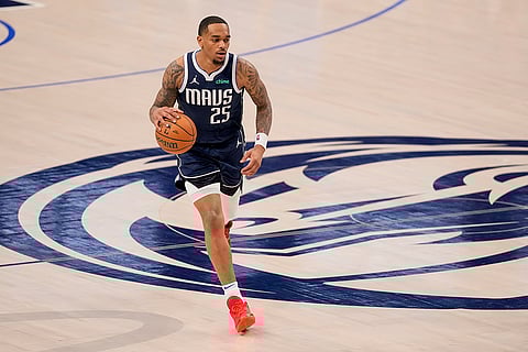Dallas Mavericks forward P.J. Washington dribbles up court against the Boston Celtics during the second half in Game 3 of the NBA basketball finals in Dallas.