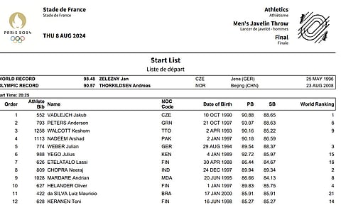 Here we are, as the reigning world and Olympic champion renews his tryst with destiny. The Neeraj Chopra-studded men's javelin throw final is slated to begin at 11:55pm IST, and we will bring you all the context, stats and information necessary to enjoy the forthcoming spectacle. (Streaming | Medal Table | Schedule & Results)