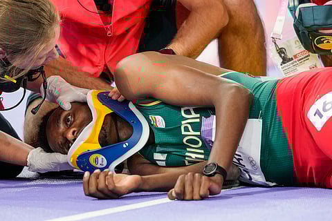 As his competitors left him behind, the Ethiopian remained on the track. Motionless. Girma was quickly attended to by medics on-site at the Stade de France and then taken off track using a stretcher. The fall seemed dangerous in real-time and Girma could not move once he collapsed.