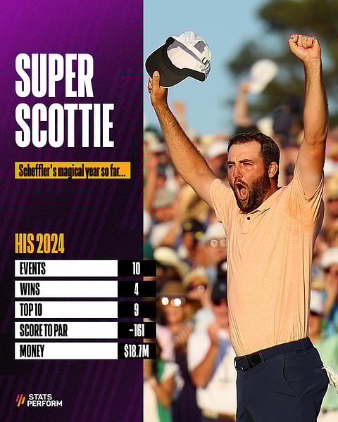 Scheffler has won on four of his last five starts, triumphing at the Arnold Palmer Invitational, Players' Championship and RBC Heritage as well as the Masters, and finished second at the other, one shot behind Stephen Jager at the Houston Open.
