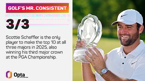 McIlroy and Scheffler are two of only three players to have recorded at least one top-three major finish in 2023, 2024 and 2025.
