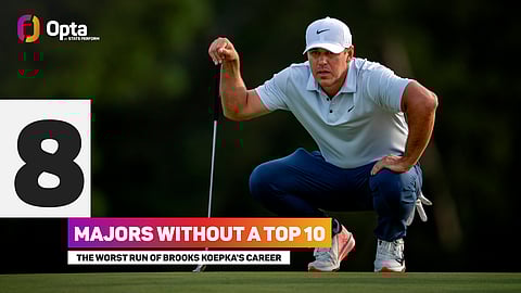 His current run of eight consecutive majors without a Top 10 is his longest career drought – this includes a missed cut in each of his first two majors this year.