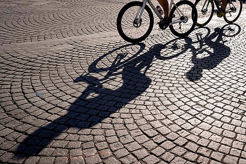 Athletes compete during the bike leg of mixed relay triathlon at the 2024 Summer Olympics in Paris, France.