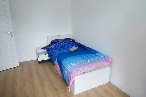 A worker walks in a street of the Olympic village, in Saint-Denis, north of Paris Wednesday, Feb. 28, 2024. When French President Emmanuel Macron inaugurates the Olympic village he will see a run-down area transformed into an international hub for the Paris Games.