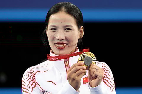 China's Wu Chunyan poses after winning gold in the Women's Individual Recurve Open, during the 2024 Paralympics in Paris, France.