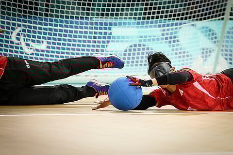 Saki Amuro of Japan competes during the Women's quarterfinal 3 round Goalball game against Brazil at the 2024 Paralympics in Paris, France.