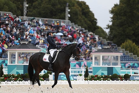 Rebecca Hart of the U.S. competes in the equestrian grade III individual event, taking home the gold medal at the Palace of Versailles at the 2024 Paralympics.