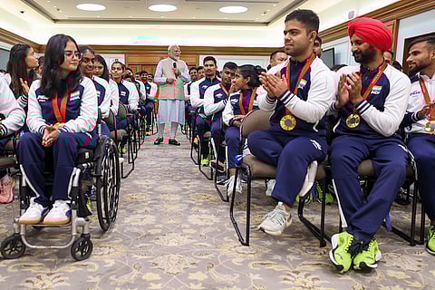 Prime Minister Narendra Modi during an interaction with the Indian contingent of the Paris Paralympic 2024, in New Delhi.