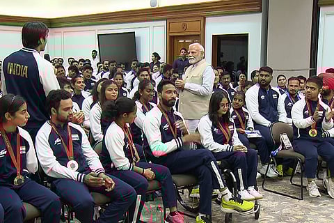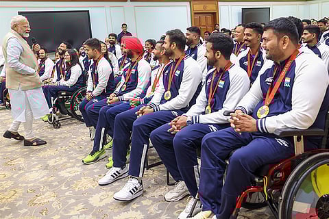 Prime Minister Narendra Modi during an interaction with India's Paris Paralympics contingent, in New Delhi.