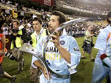 FOW: R Uthappa (94-1, 20.5), G Gambhir (121-2, 25.2), Yuvraj Singh (175-3, 35), S Tendulkar (205-4, 39.2), Rohit Sharma (209-5, 41.1), I Pathan (237-6, 47.2), *MS Dhoni (240-7, 48), Harbhajan Singh (249-8, 48.5), P Kumar (255-9, 49.3) |
