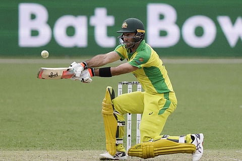 Glenn Maxwell goes for a switch hit. AP Photo