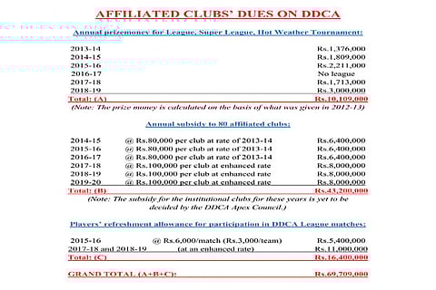 Between July 2018 and November 2019, the Delhi and District Cricket Association (DDCA) received at least Rs.40.75 crore from the Board of Control for Cricket in India (BCCI) – some of it is its share of the BCCI’s income and some for expenditure/reimbursement. But despite having enough money in its kitty over the years, the DDCA, for some unexplained reason, has not paid almost Rs.7 crore due to its affiliated clubs dating back to seven years. The dues include clubs’ annual subsidy and prize money of the League, Super League, and Hot Weather Tournament winning teams (see graph below). (More Cricket News)