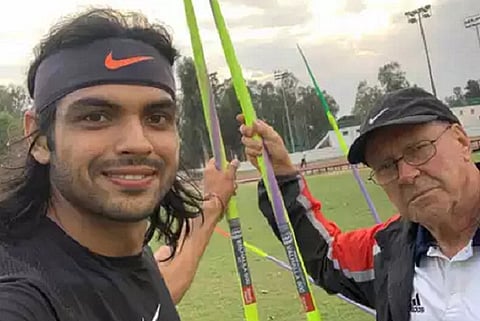 Neeraj Chopra and coach Klaus Bartonietz. Photo: Twitter