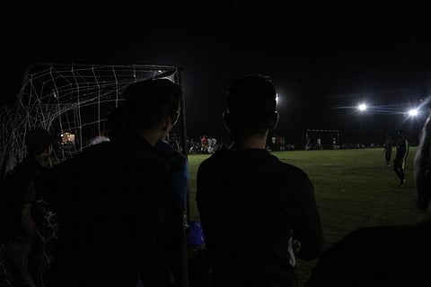 Azhar Teli passes the ball to Mehraj Ahmad. Mehraj moves it closer to the goal area. Three Iqbal Hygam FC opponents tail him. The playground is filled with cheers for Mehraj, "Go Mehraj Go!". Mehraj takes a second touch and scores a goal for Amberpora FC within 10 minutes of the first half. The 2,000-odd spectators burst into cheers, jumping, and dancing.
