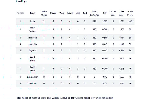 Sri Lanka and New Zealand are on 60 points each in the table after drawing their two-match series 1-1 while England and Australia are on 56 each after their five-match Ashes series ended 2-2.