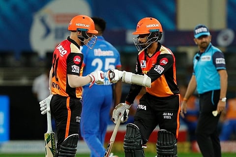 David Warner and Wriddhiman Saha's 107-run opening wicket stand helped Sunrisers Hyderabad set up a big score against Delhi Capitals on Tuesday. (Photo: BCCI)