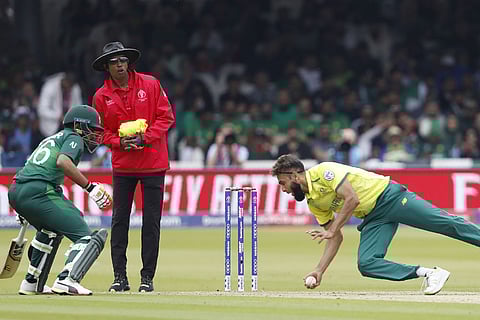 10:55 PM IST: Wahab Riaz on with his last over. A dot then bowls Lungi Ngidi (1 off 6). FoW- 246/9 (49.2 overs). Imran Tahir, right-handed batsman, is the last man. A single to extra cover despite a mixed-up between the South African batsmen. Two runs from the over. Wahab's figures: 3/46. SA-248/9 after 49 overs. They need 61 from 6 balls.