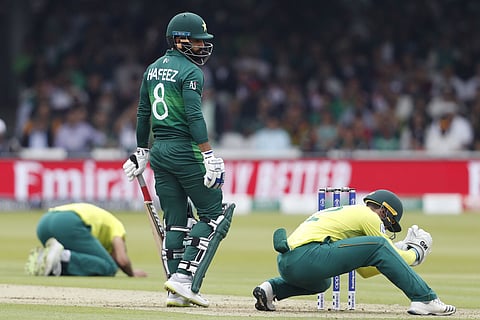 5:14 PM IST: Aiden Markram removes Mohammad Hafeez (20 off 33), LBW. FoW-143/3 (29.6 overs). Hafeez fails to take the review, time out. Four runs from the over. Haris Sohail, left-handed batsman, is the new man.