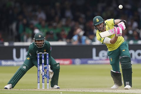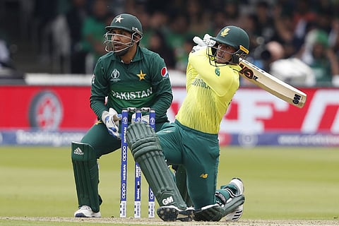 6:50 PM IST: Lungi Ngidi on with the last over of the match. Cleans up Wahab Riaz with a deadly yorker. On hattrick. Skipper Sarfaraz Ahmed plays the hattrick ball to mid-wicket for a single. Haris Sohail needs 12 for a World Cup ton. A single off the next ball, to deep cover. Sarfaraz goes for a swing, but only a single, to long on. Sohail, on 89, and he's out. Top edge and caught by Quinton de Kock. Slower ball doing the trick. He made 89 off 59, nine fours and three sixes. And that's Pakistan's second-highest World Cup score by a number five or below, behind Imran Khan's unbeaten 102 against Sri Lanka at Leeds in 1983. Shadab Khan is the new man and review for run out. Not out, and PAK-308/7.