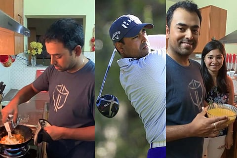 Golfer Anirban is quite a chef—here he rustles up a Bengali prawn curry and shares it with wife Ipsa.