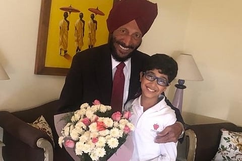 Milkha Singh with his grandson. Image Credit: Outlook