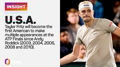 After qualifying for the 2022 ATP Finals, Fritz will become the first American to make multiple appearances at the event since Andy Roddick (2003, 2004, 2006, 2008 and 2010).