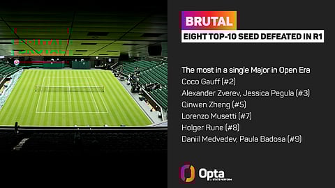 Across the men's and women's draws, it is the first time as many as eight top-10 seeded players have gone out in the first round of a grand slam in the Open Era.