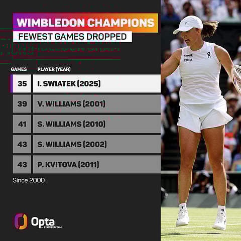 She only dropped 35 games en route to the title, surpassing Venus Williams (39 in 2001) for the fewest by any women's singles champion this century.