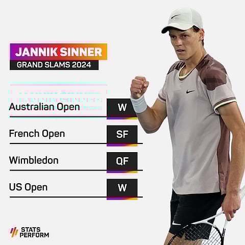 Sinner reached at least the quarter-finals at each of 2024's majors, losing to Carlos Alcaraz in the French Open semi-finals and Medvedev in the last eight at Wimbledon.