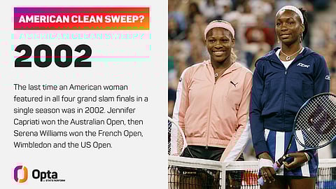 Should an American reach the US Open final, it will be the first time a woman representing the USA has reached the showpiece match of all the majors in one season since 2002.